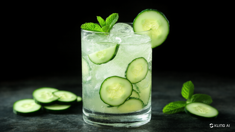 Muddle cucumber and mint with simple syrup in shaker. Add gin and lime juice with ice. Shake lightly and strain into a tall glass over ice. Top with club soda. Garnish with cucumber ribbon and mint sprig.